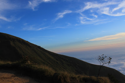 Pestan, sebuah tempat yg agak datar dan terbuka dan langsung menghadap ke gunung Sindoro yang ada di depannya. Pas banget pemandangannya juga menuju arah barat sehingga kami  bisa menikmati sunset dari sini dan alhamdulillahnya cuaca hari ini cerah. Karena Pestan ini sudah berada di ketinggian (pas nya berapa gw lupa) dan terbuka otomatis angin yang berhembus di sini pun kencang banget dan di bawah kaki kita terhampar awan-awan yang menggulung yang menutupi desa Garung. Sebuah negeri di atas awan.