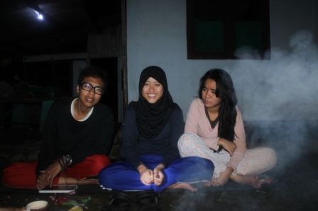 makan api unggun udah jadi. Langsung duduk-duduk kita semua mengitari api