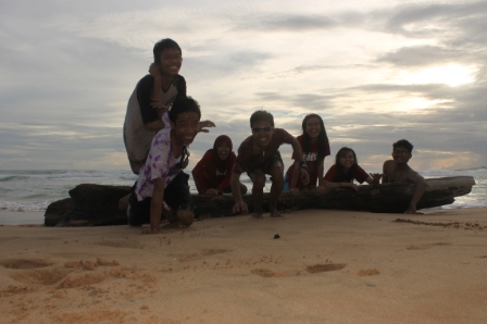 main di pantai. Baik banget kan pak Sorhimnya. Kita pun makan malam ala nasi